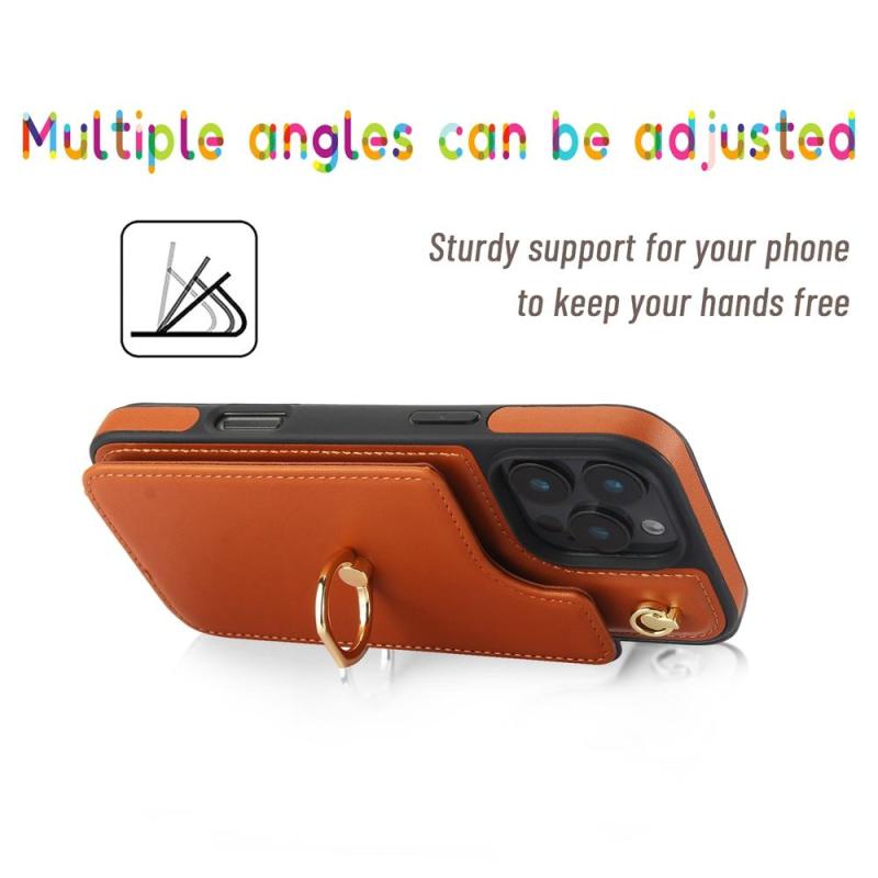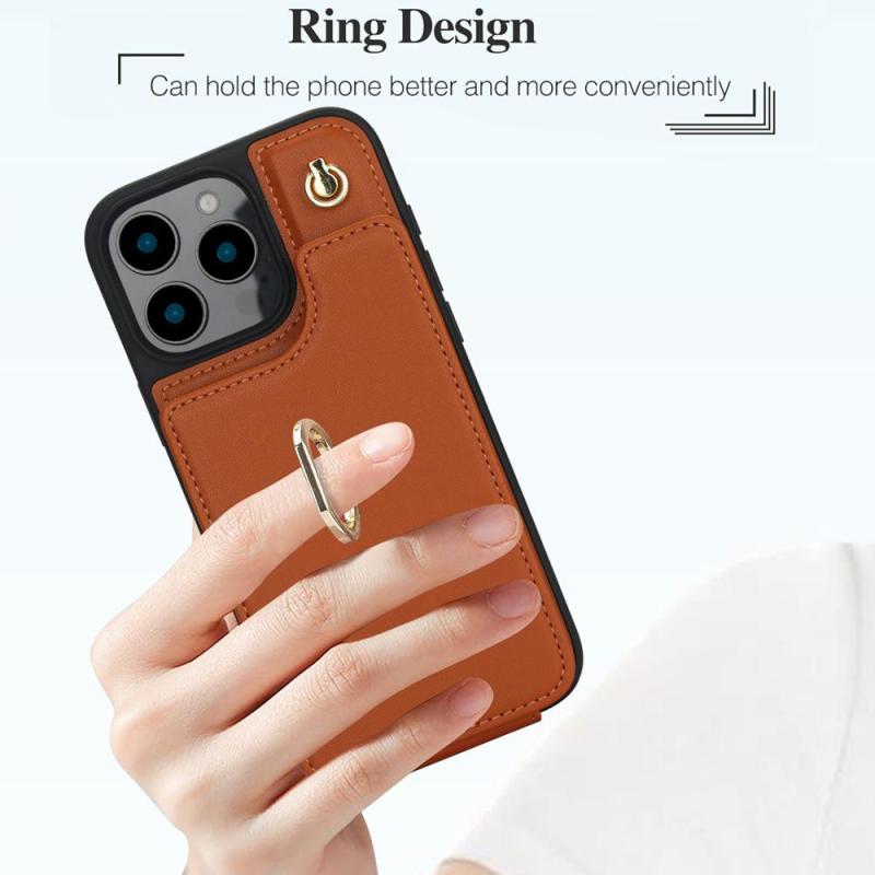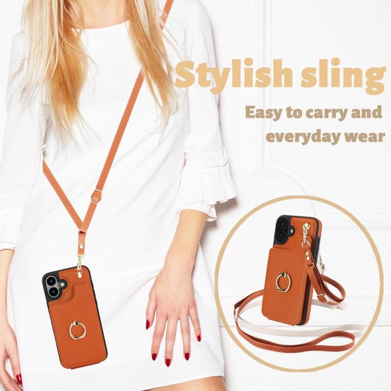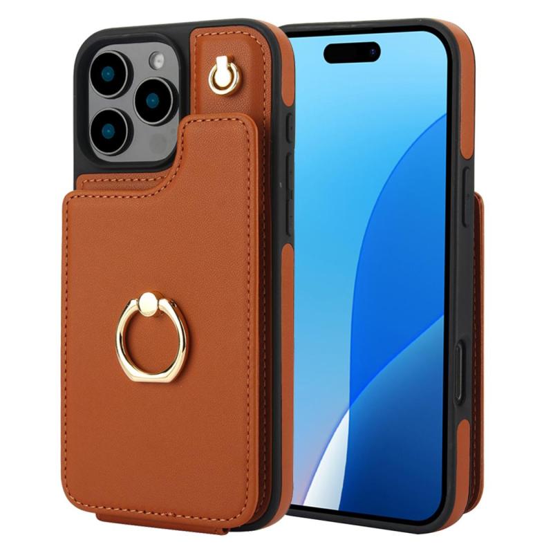 For iPhone 16 Pro YM005 Skin Feel Card Bag Phone Case with Long Lanyard(Brown)