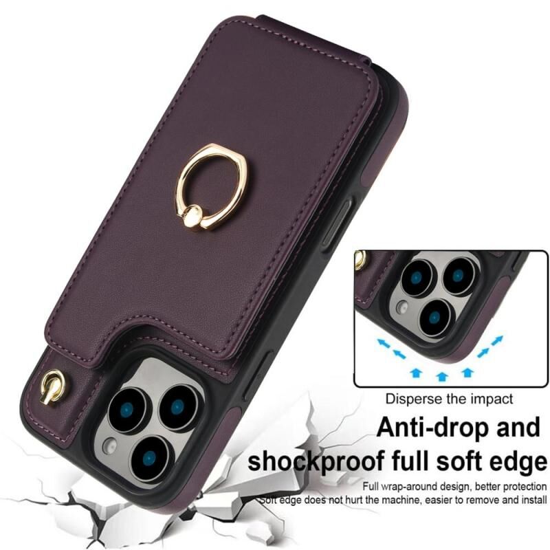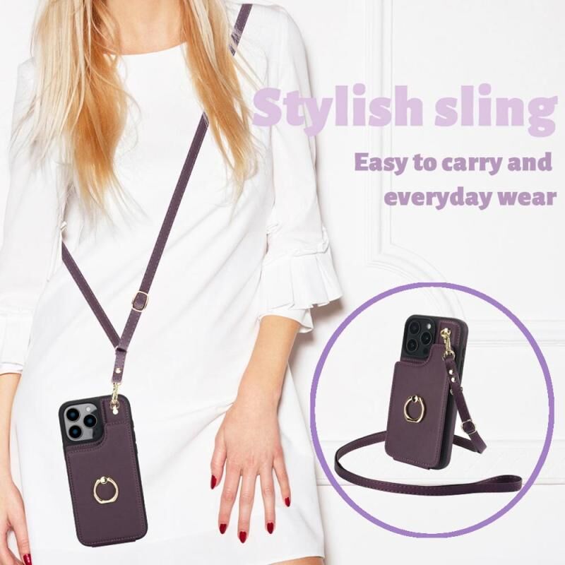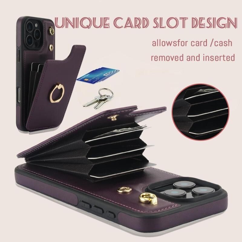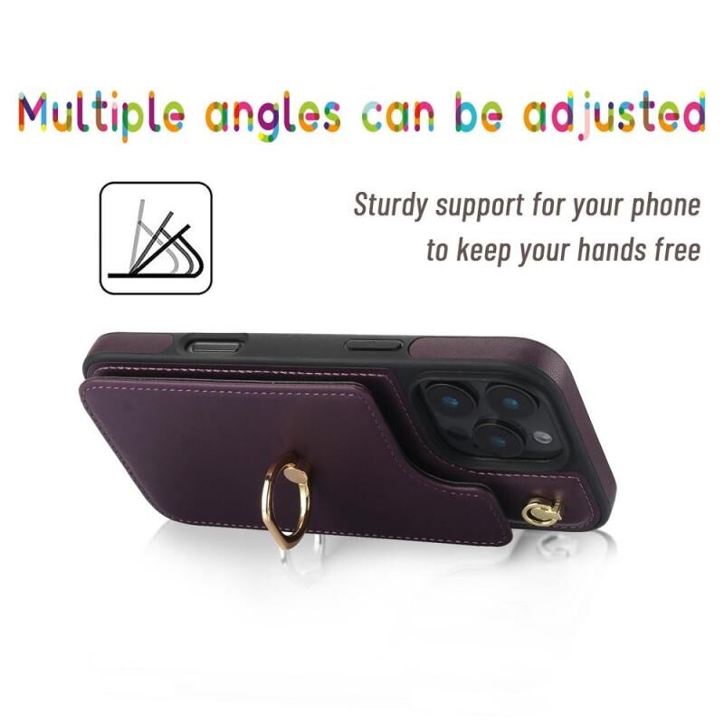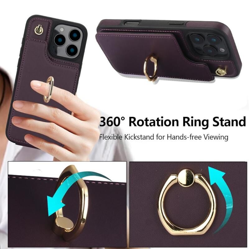 For iPhone 16 Pro YM005 Skin Feel Card Bag Phone Case with Long Lanyard(Dark Purple)