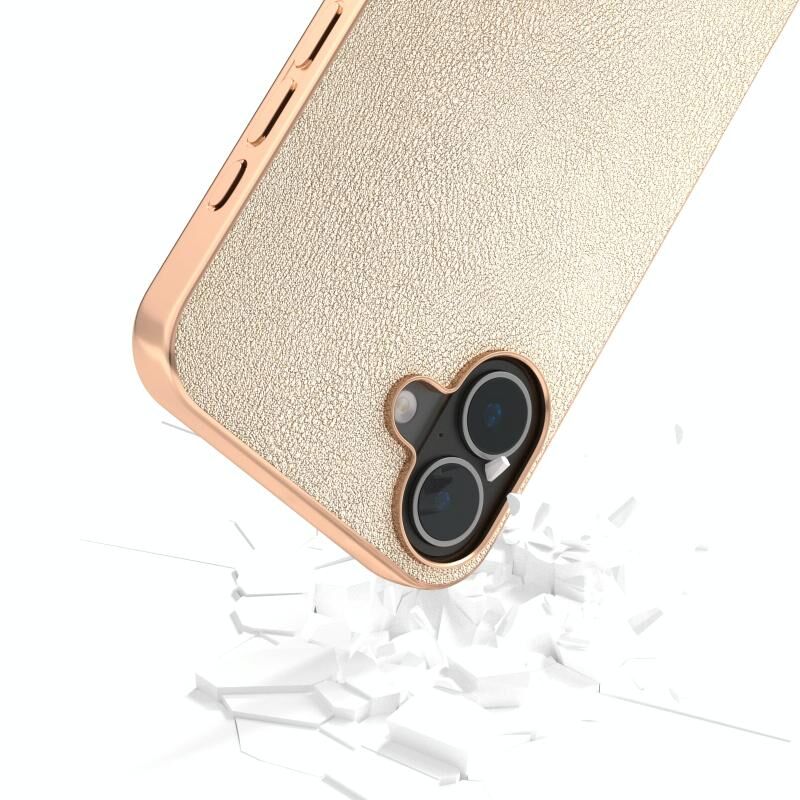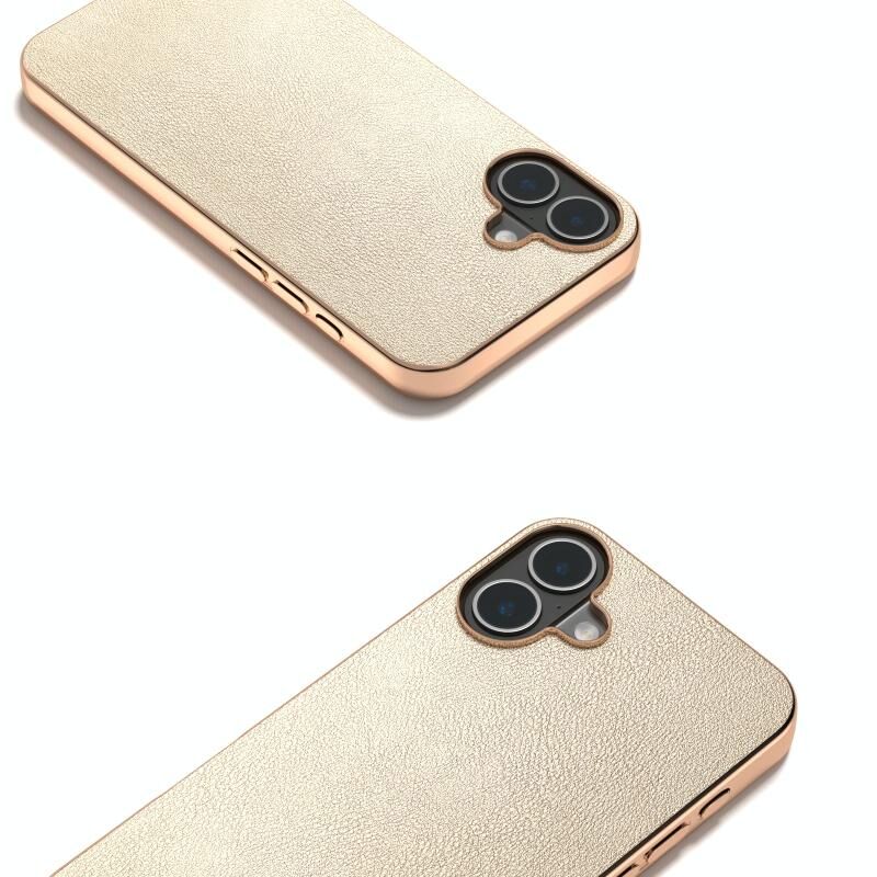 Θήκη τηλεφώνου πλήρους κάλυψης για iPhone 16, από δερματίνη PU με ηλεκτρολυτικό πλαίσιο (Πορτοκαλί)