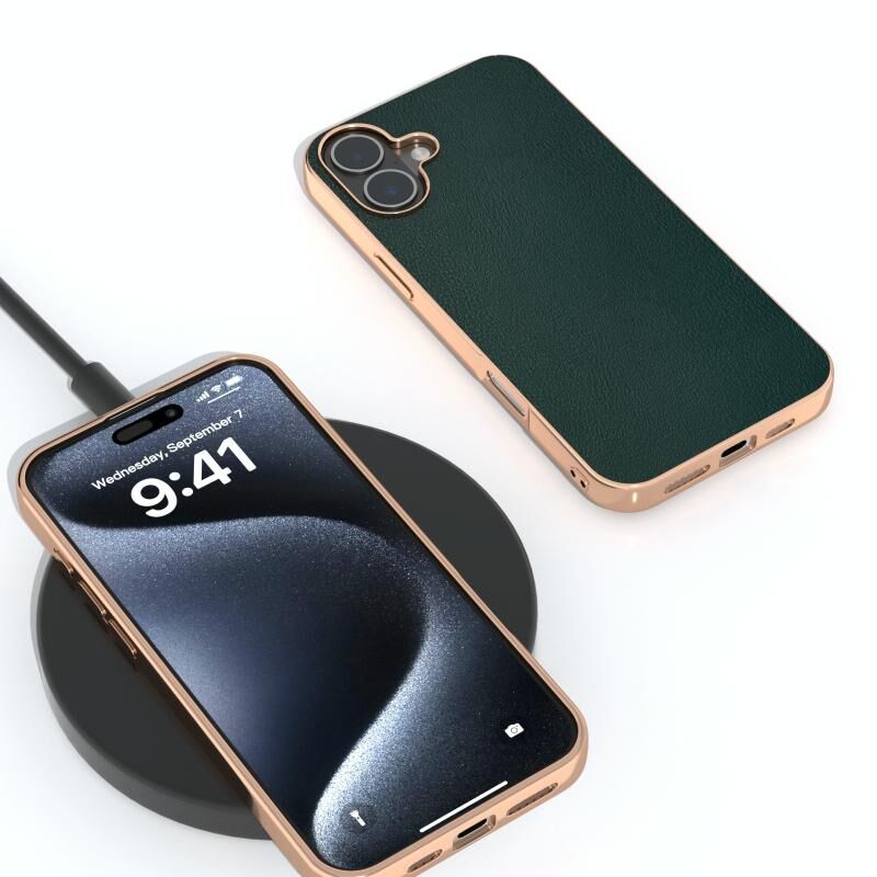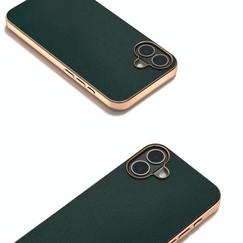Θήκη τηλεφώνου πλήρους κάλυψης για iPhone 16, από δερματίνη PU με ηλεκτρολυτικό πλαίσιο (Πορτοκαλί)
