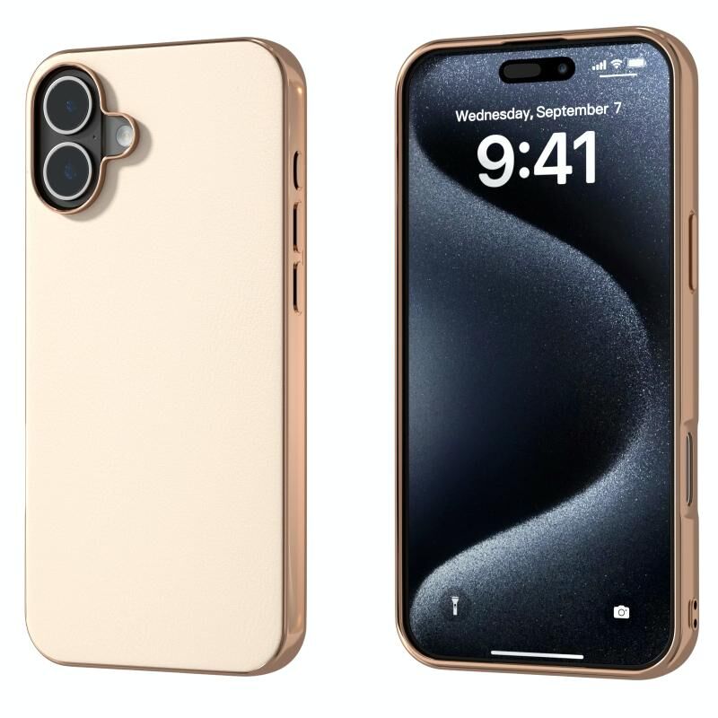 Θήκη τηλεφώνου πλήρους κάλυψης για iPhone 16, από δερματίνη PU με ηλεκτρολυτικό πλαίσιο (Πορτοκαλί)