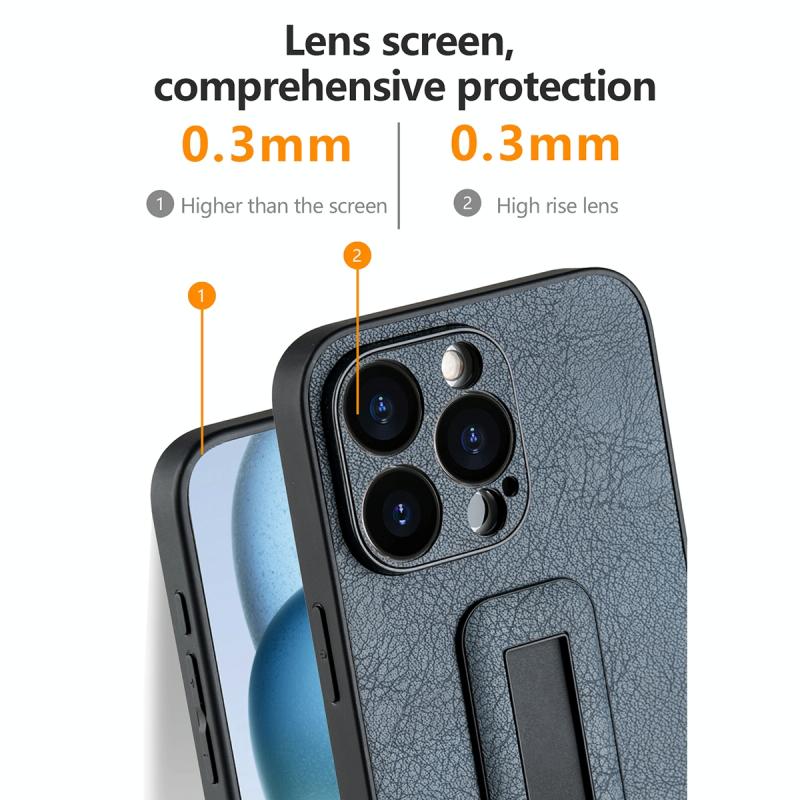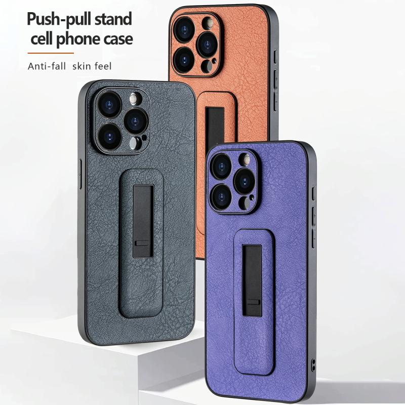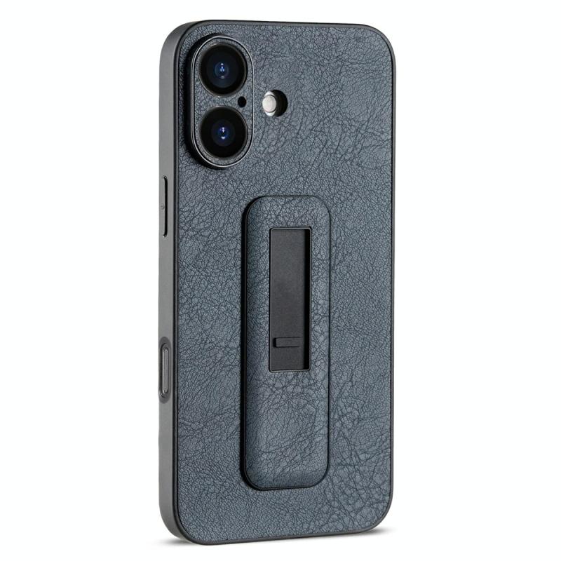 For iPhone 16 PU Leather Push-pull Bracket Shockproof Phone Case(Black)