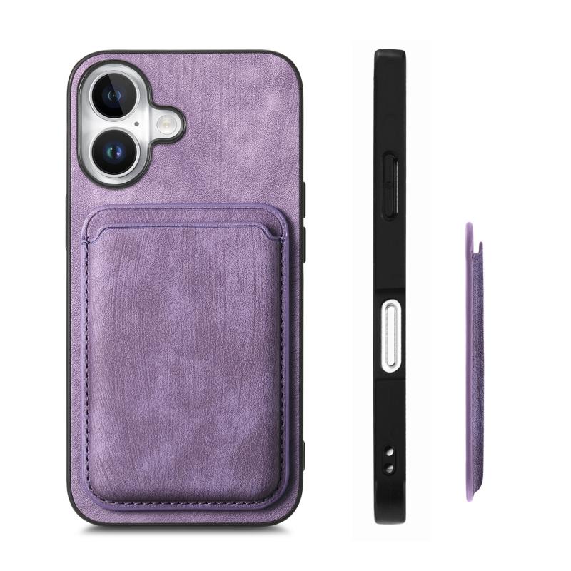 For iPhone 16 Retro Leather Card Bag Magnetic Phone Case(Purple)