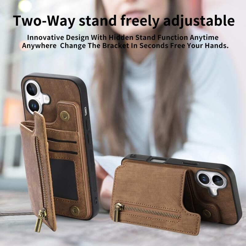 Για iPhone 16 Ρετρό δέρμα φερμουάρ πορτοφόλι πίσω υπόθεση τηλεφώνου (καφέ)