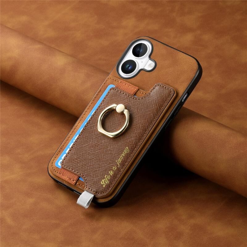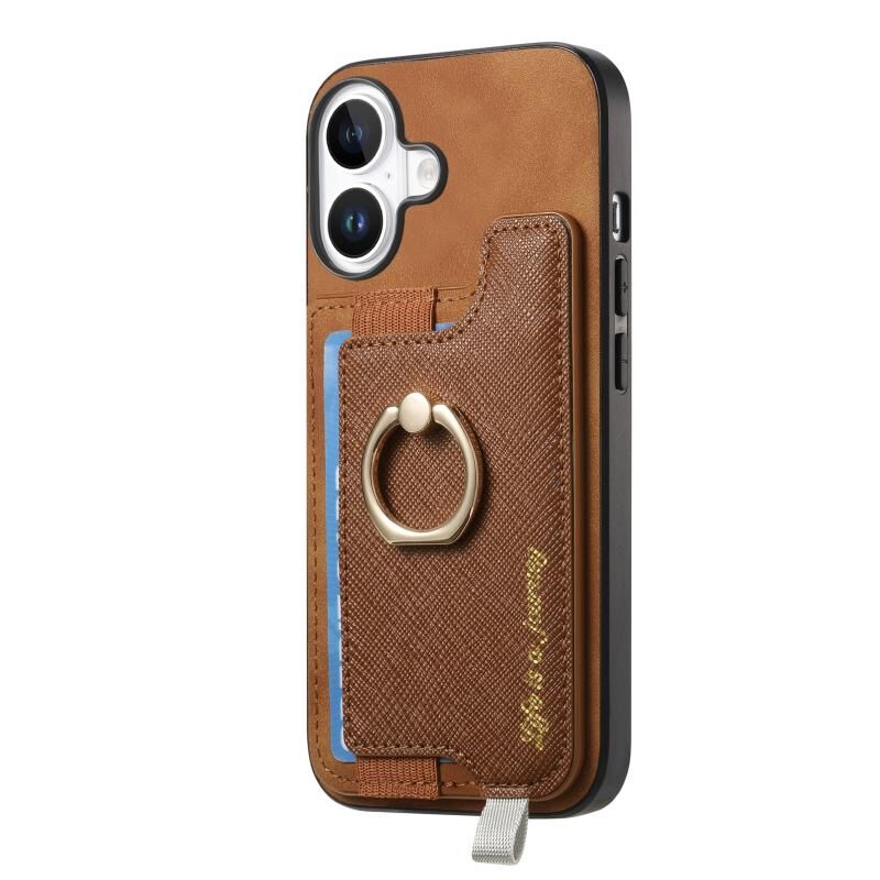 Θήκη τηλεφώνου για iPhone 16 Retro MagSafe, Δερμάτινος Δακτύλιος Στήριξης με Θήκη Κάρτας (Ροζ)