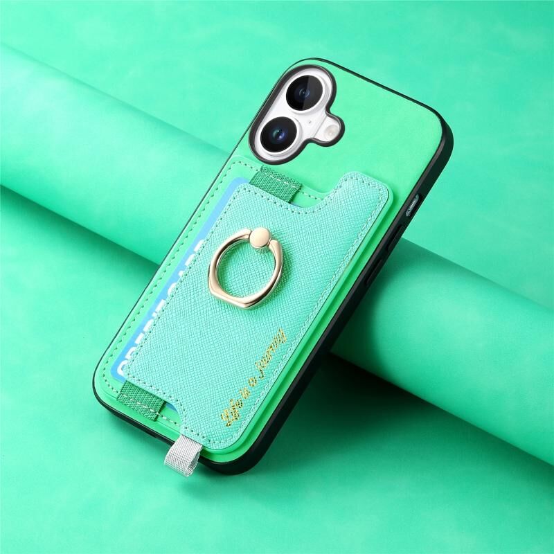 Θήκη τηλεφώνου για iPhone 16 Retro MagSafe, Δερμάτινος Δακτύλιος Στήριξης με Θήκη Κάρτας (Ροζ)