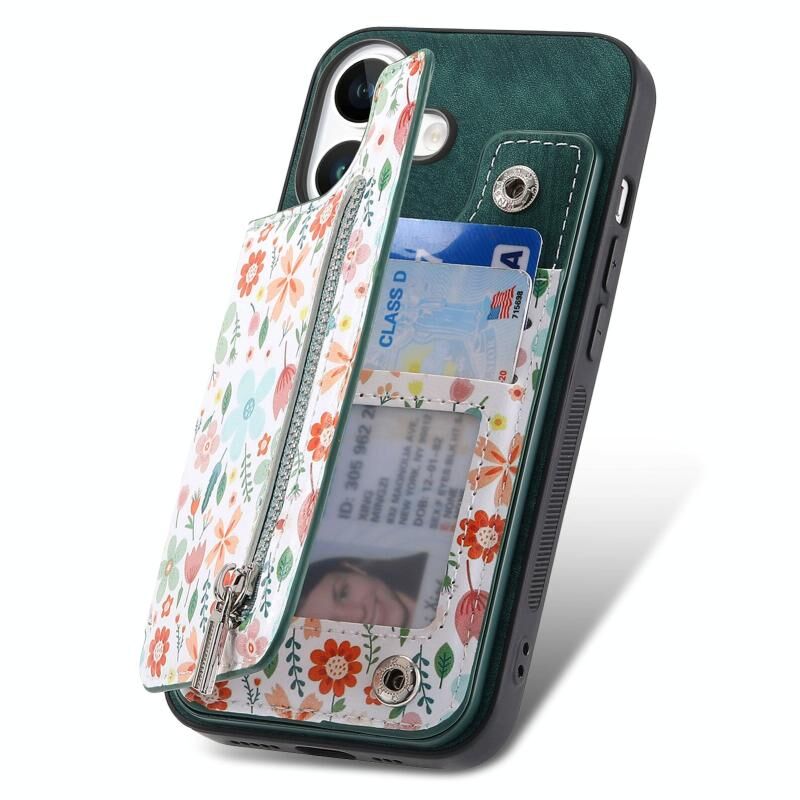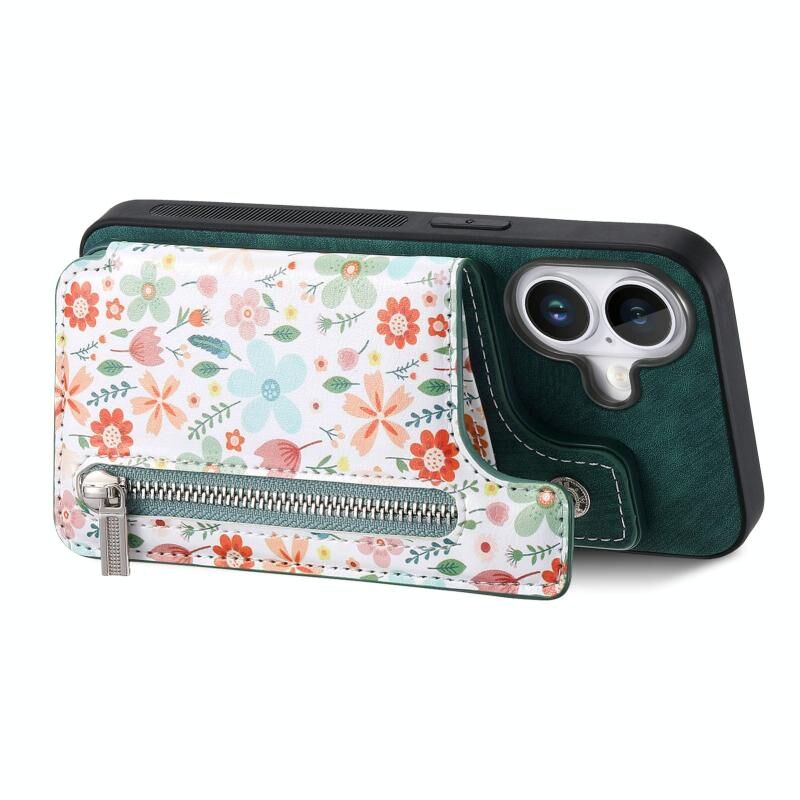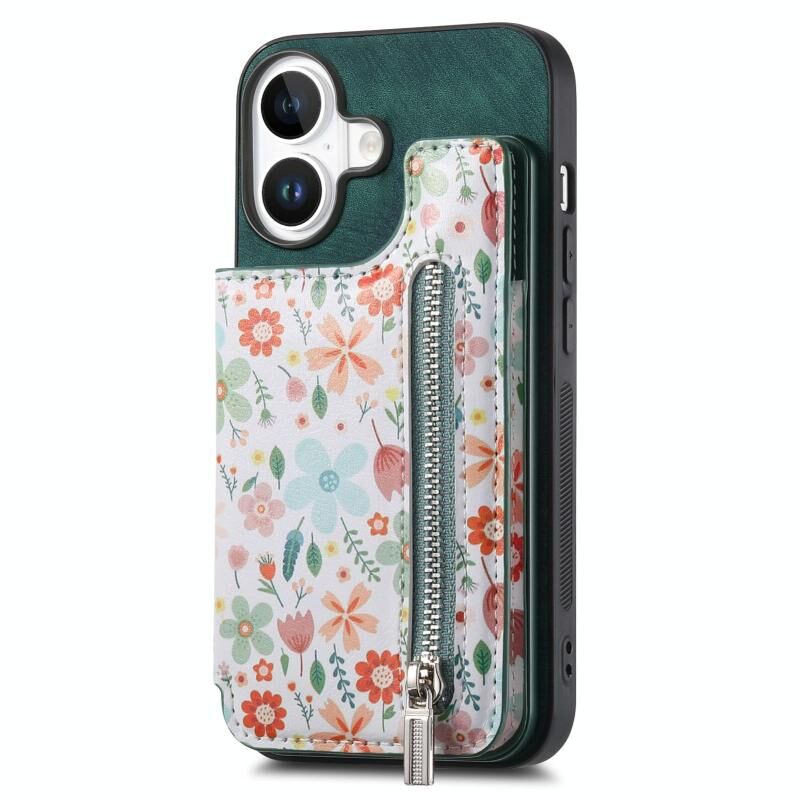 Θήκη τηλεφώνου με σχέδιο retro, ζωγραφισμένη και με φερμουάρ για iPhone 16 (Ροζ)