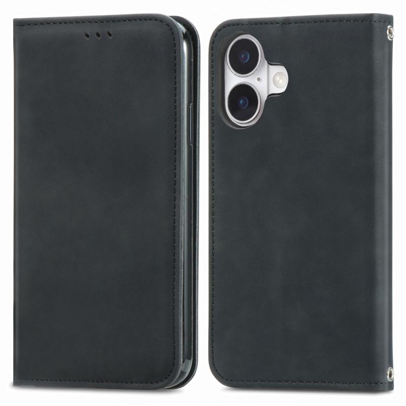 For iPhone 16 Retro Skin Feel Magnetic Flip Leather Phone Case(Black)
