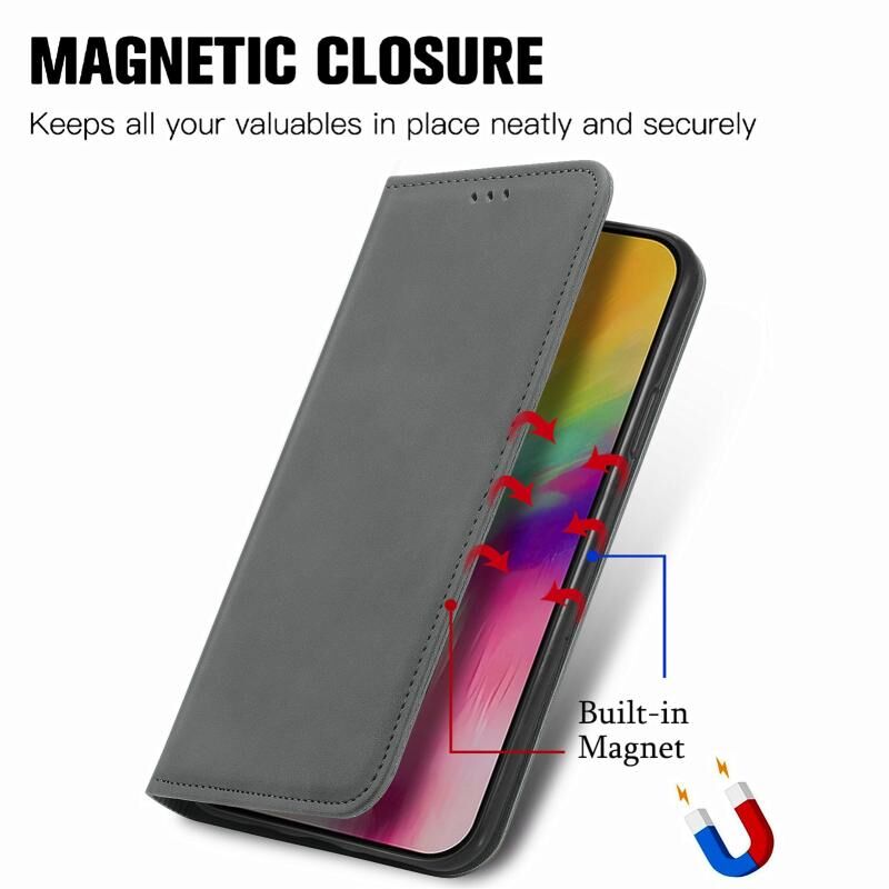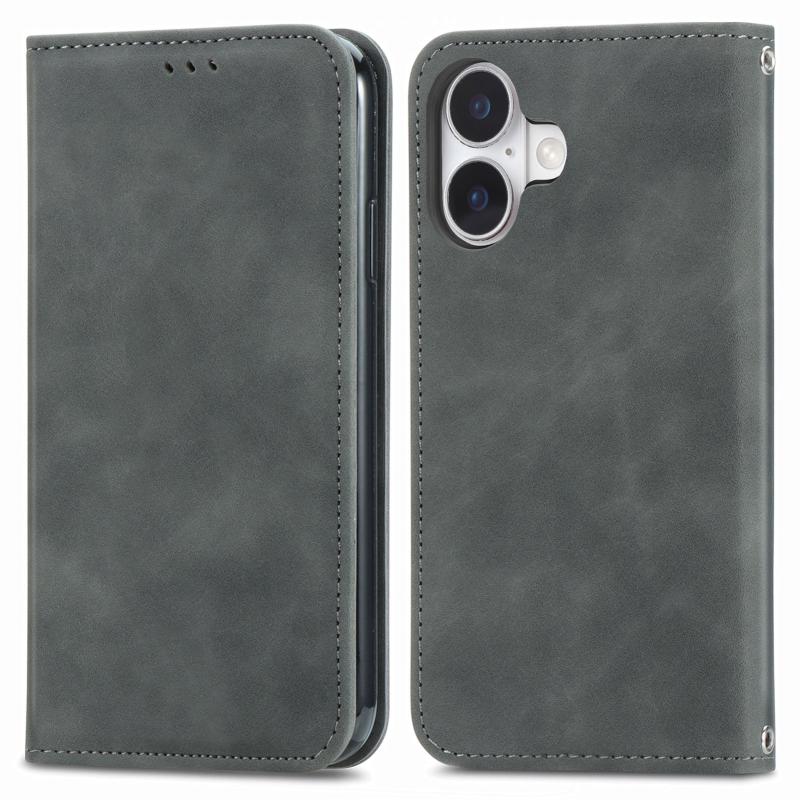 For iPhone 16 Retro Skin Feel Magnetic Flip Leather Phone Case(Gray)