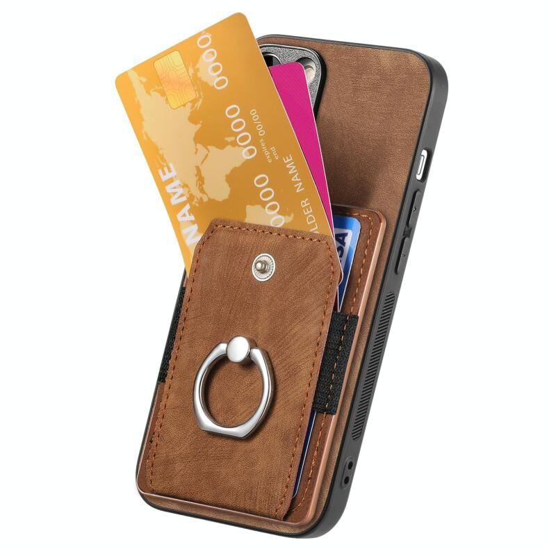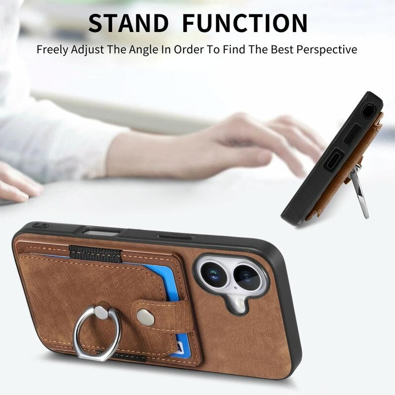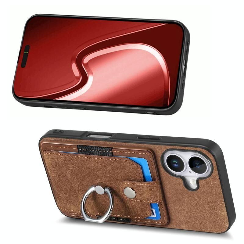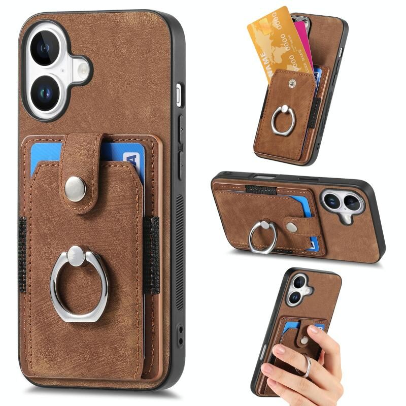 Θήκη τηλεφώνου με δακτύλιο και κάρτες, υφή retro για iPhone 16 (Πράσινο)