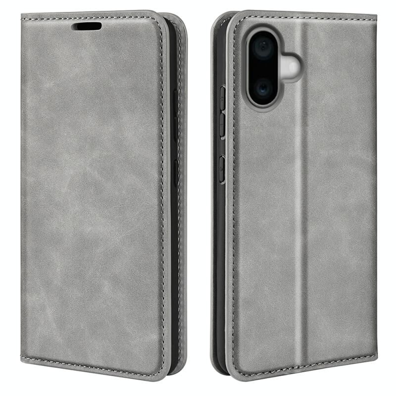 Θήκη τηλεφώνου από δέρμα με μαγνητική απορρόφηση Retro-skin για iPhone 16 (Γκρι)