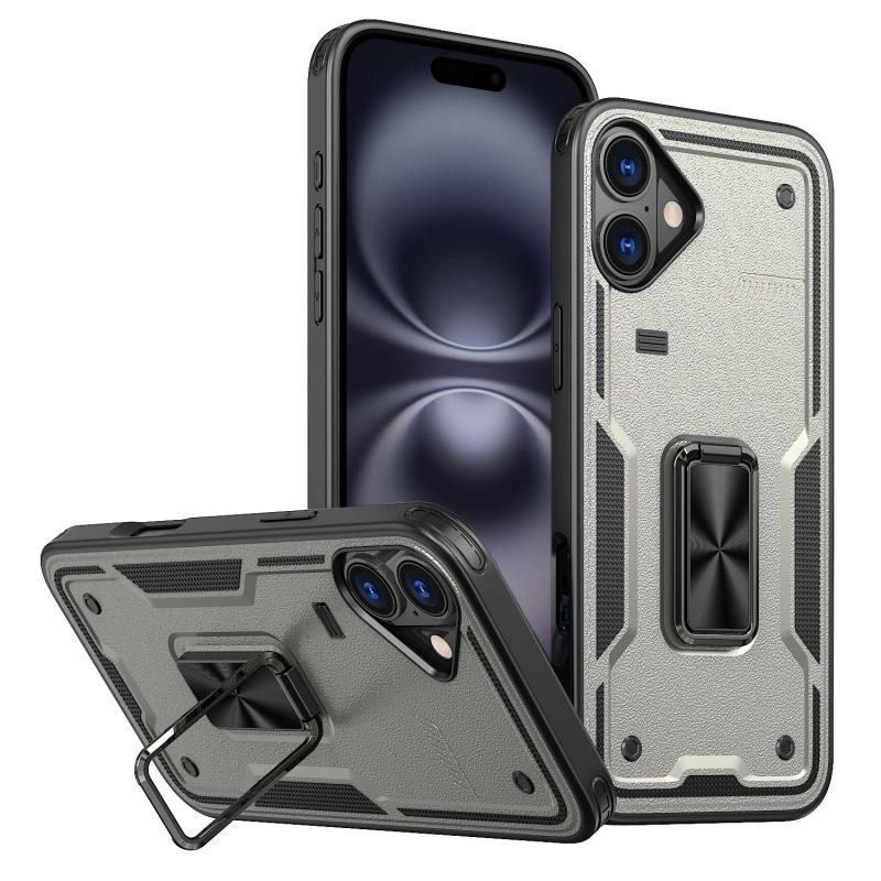 For iPhone 16 Ring Holder PC Hybrid TPU Phone Case(Titanium Grey)