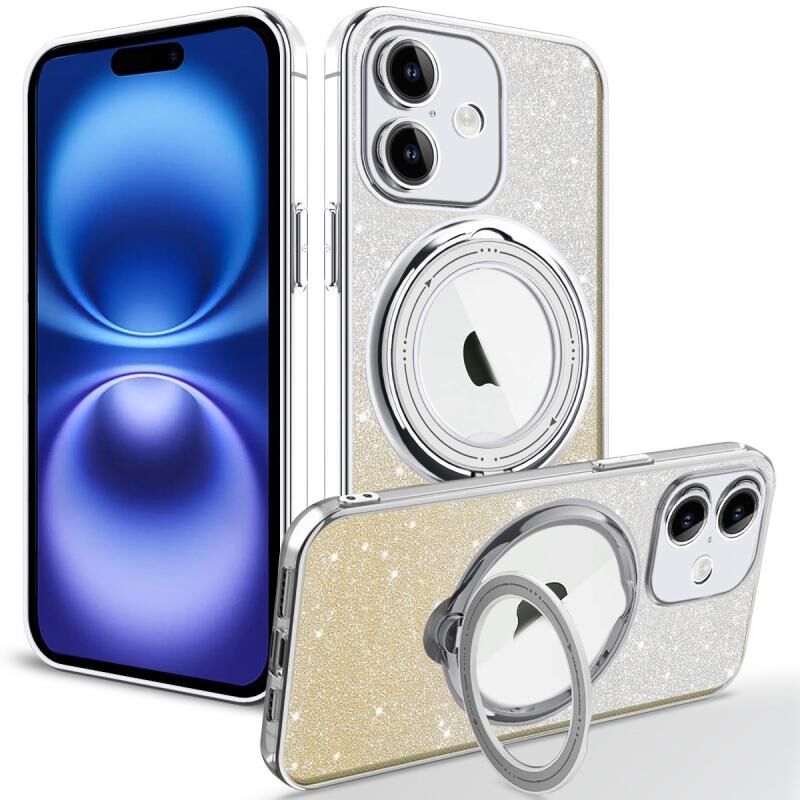 Θήκη τηλεφώνου για iPhone 16 με περιστρεφόμενη βάση MagSafe, διαφανές TPU με λαμπερό ντεγκραντέ (Μωβ της Νύχτας)