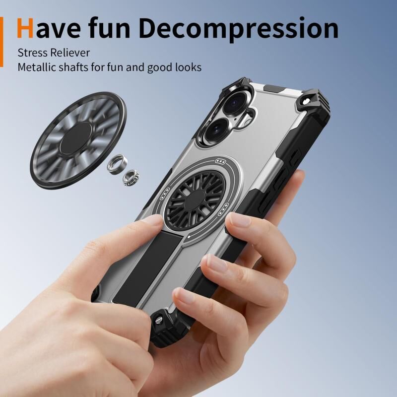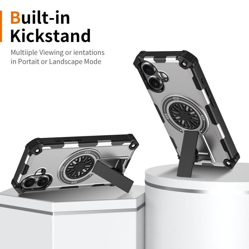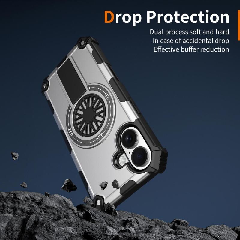For iPhone 16 Shockproof Kickstand Metallic Shaft MagSafe Phone Case(Silver)