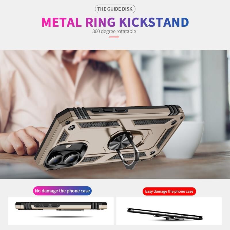 For iPhone 16 Shockproof TPU Hybrid PC Phone Case with Holder(Gold)