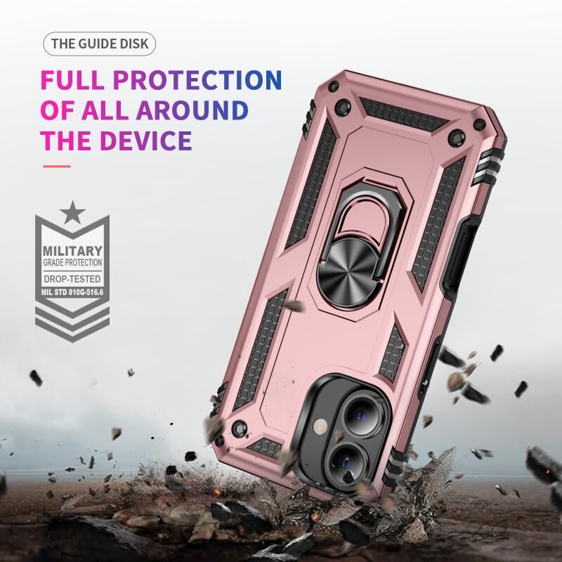 For iPhone 16 Shockproof TPU Hybrid PC Phone Case with Holder(Rose Gold)