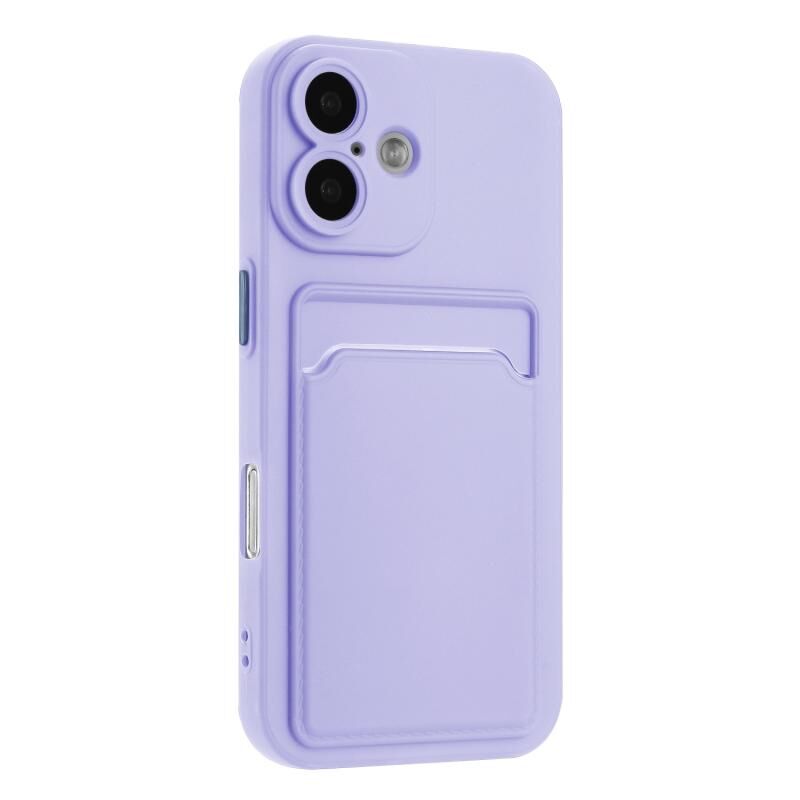 Θήκη τηλεφώνου TPU για iPhone 16 με αίσθηση δέρματος, αντίθεση χρωμάτων και κουμπιά (Μωβ)