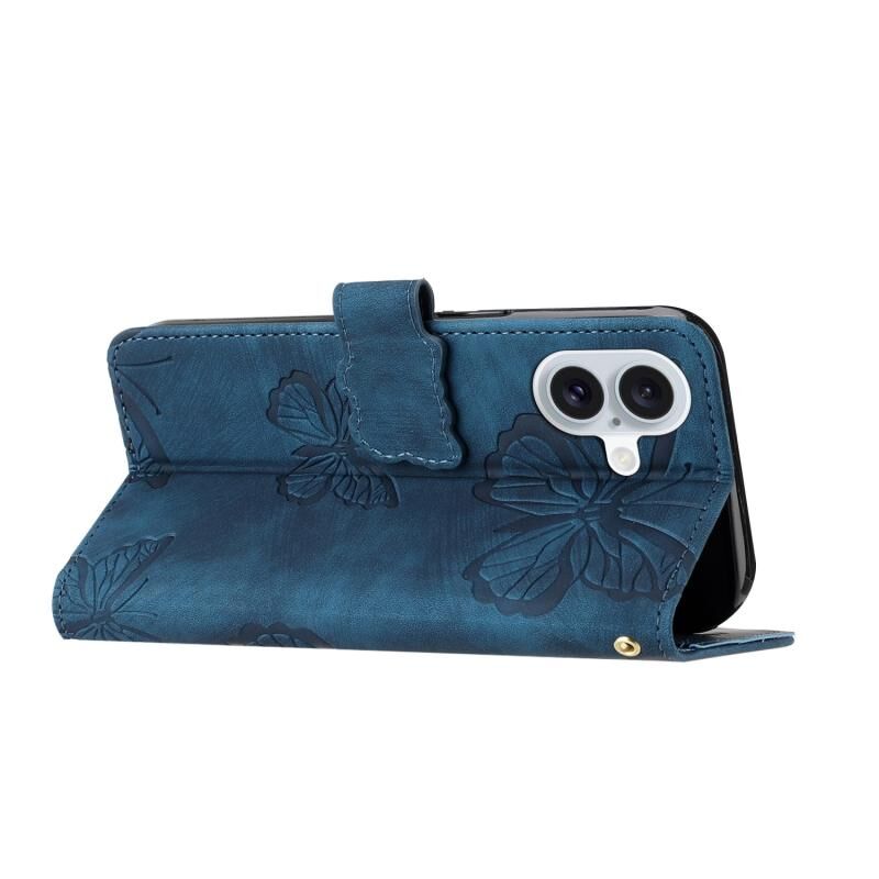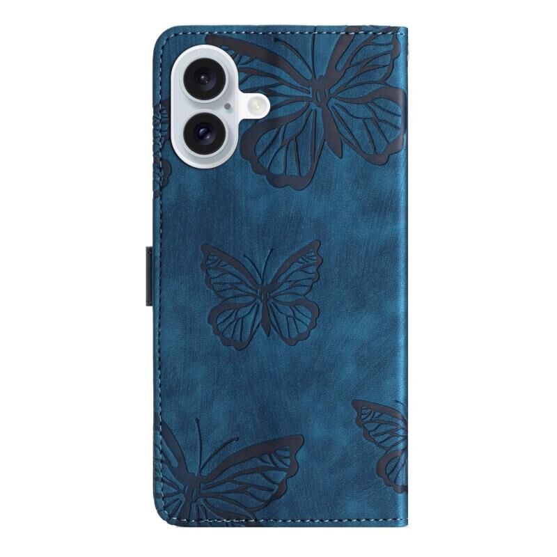For iPhone 16 Skin-feel Embossed Butterfly Leather Phone Case(Blue)