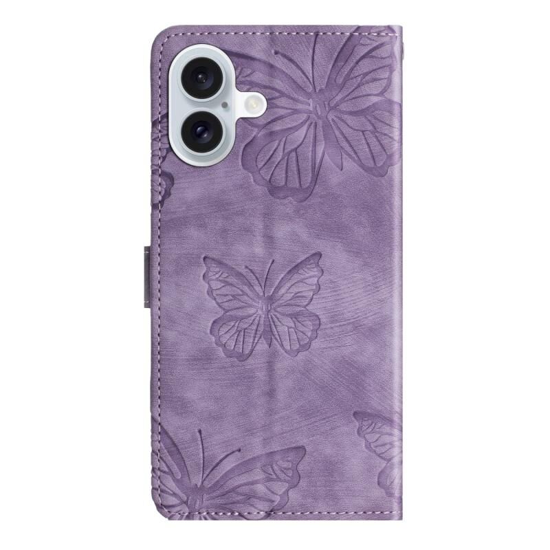 For iPhone 16 Skin-feel Embossed Butterfly Leather Phone Case(Purple)