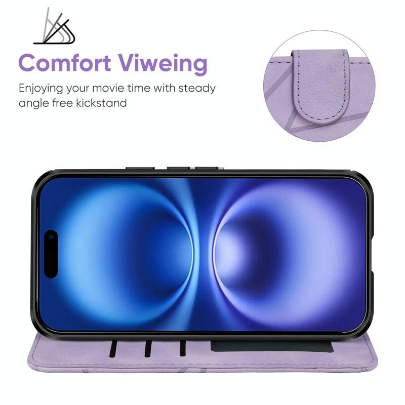 Θήκη τηλεφώνου από δέρμα με γεωμετρικές γραμμές και αίσθηση δέρματος για iPhone 16 (Μωβ)