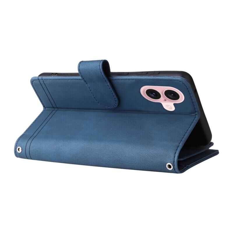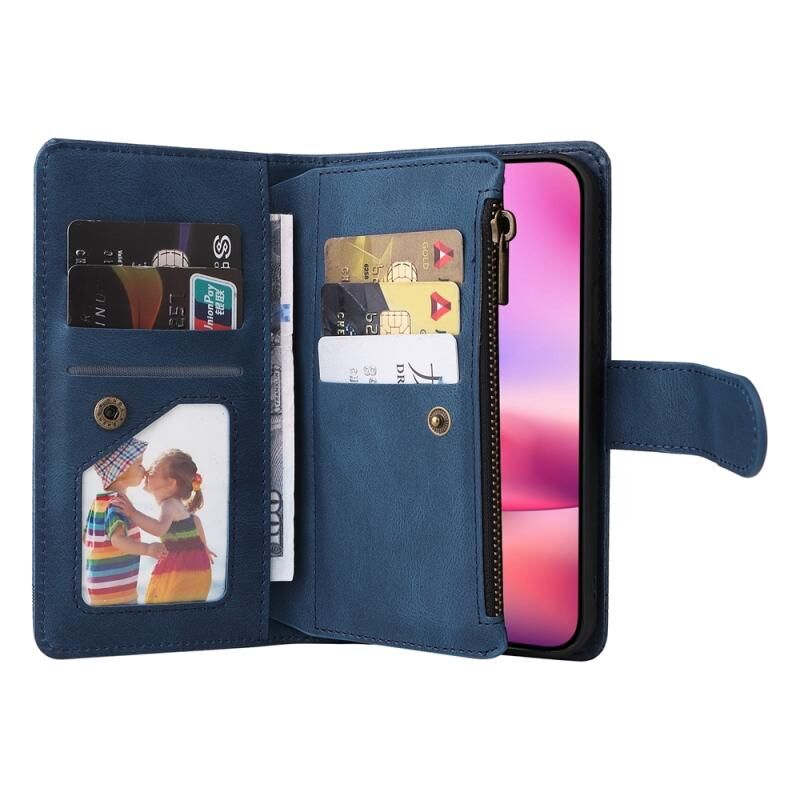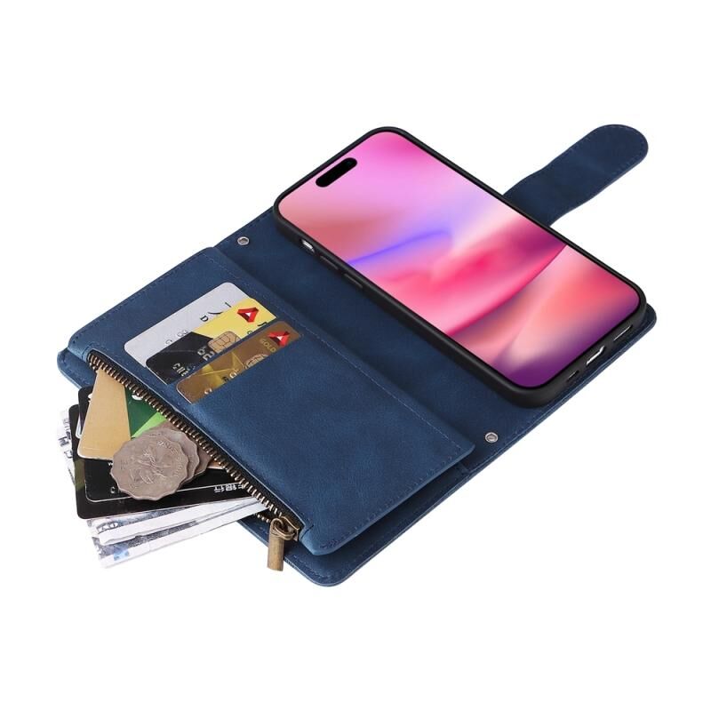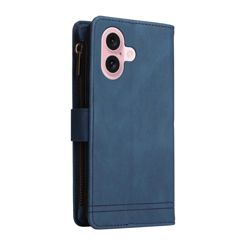 For iPhone 16 Skin Feel Multi-Card Wallet Zipper Leather Phone Case(Blue)