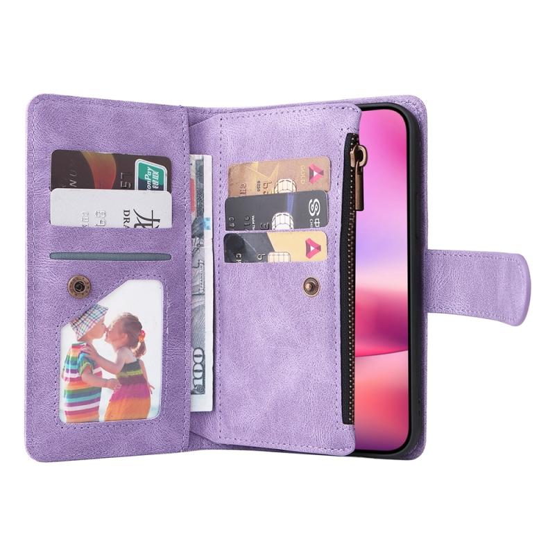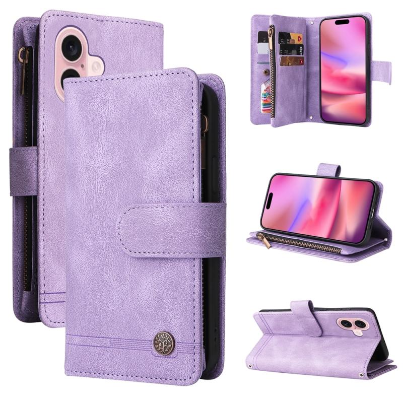 For iPhone 16 Skin Feel Multi-Card Wallet Zipper Leather Phone Case(Purple)
