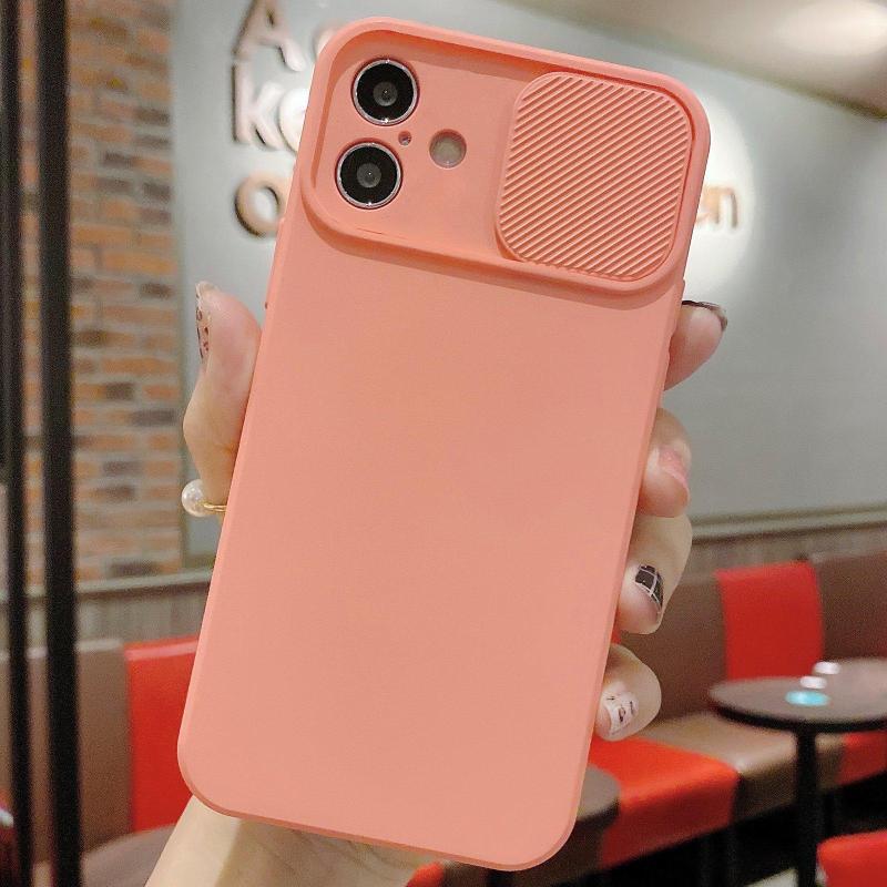 For iPhone 16 Slid Camera Shield Liquid Silicone TPU Phone Case(Pink Orange)