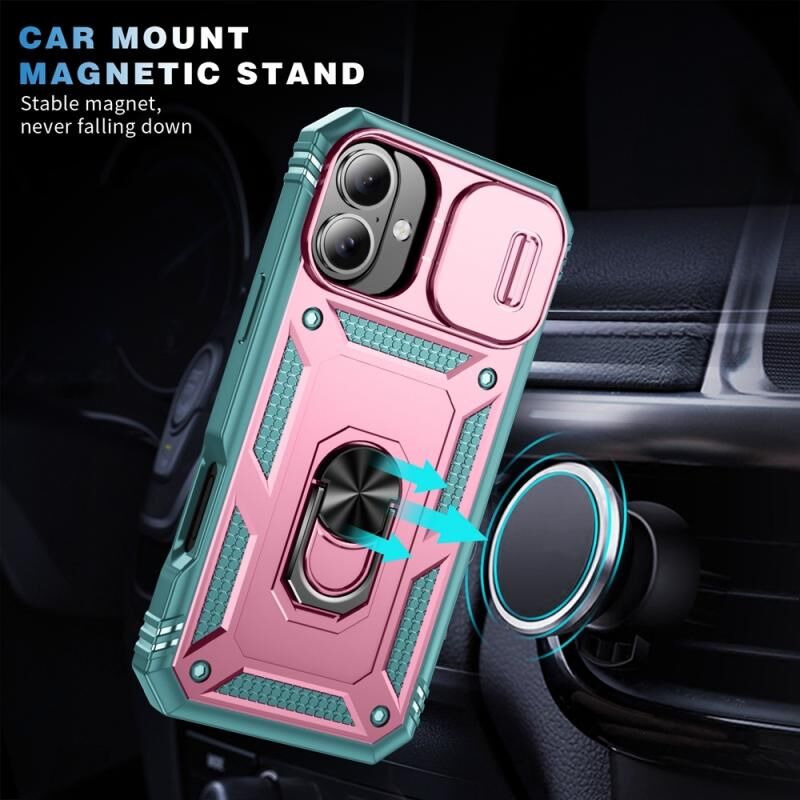 For iPhone 16 Sliding Camshield TPU + PC Phone Case with Holder(Green+Pink)