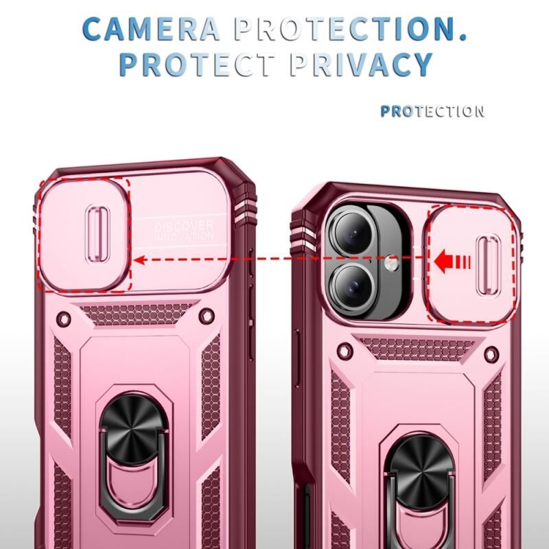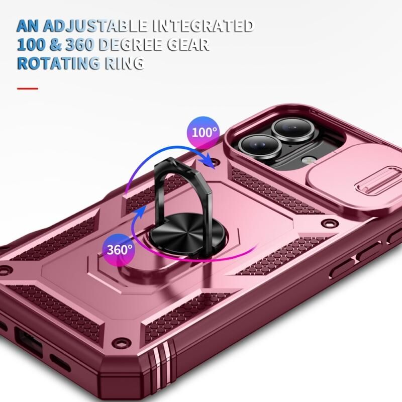 For iPhone 16 Sliding Camshield TPU + PC Phone Case with Holder(Pink+Rose Red)