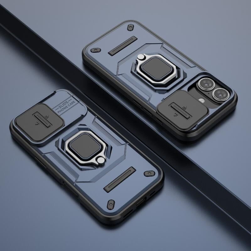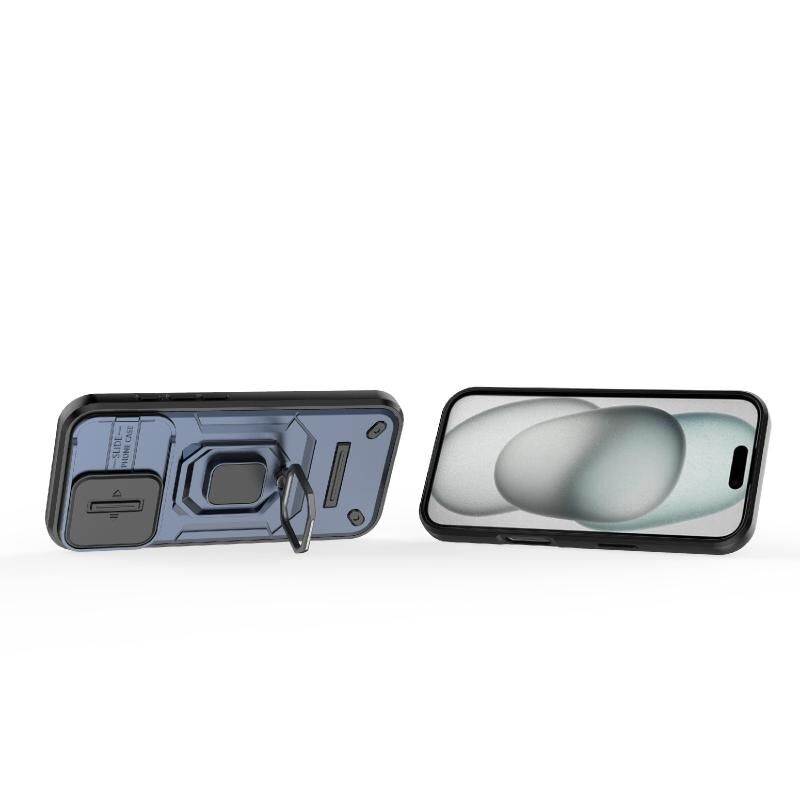 Θήκη κινητού τηλεφώνου για iPhone 16 με ολισθαίνουσα προστασία κάμερας, κατασκευασμένη από TPU + PC, ανθεκτική σε κρούσεις, με βάση στήριξης (Γκρι)