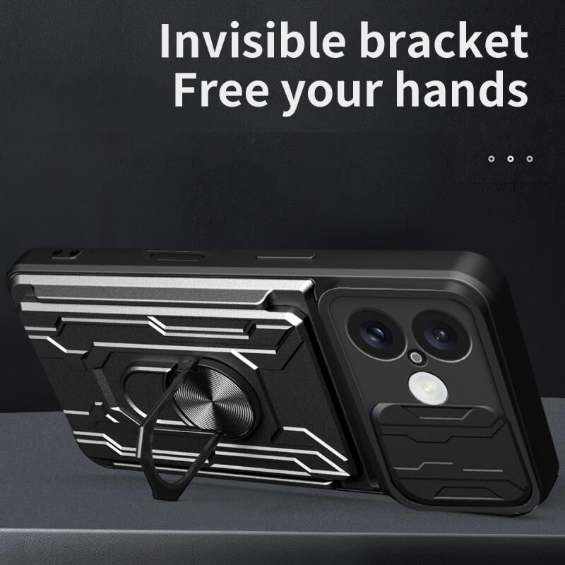 For iPhone 16 Sliding Camshield TPU+PC Phone Case with Card Slot(Grey)