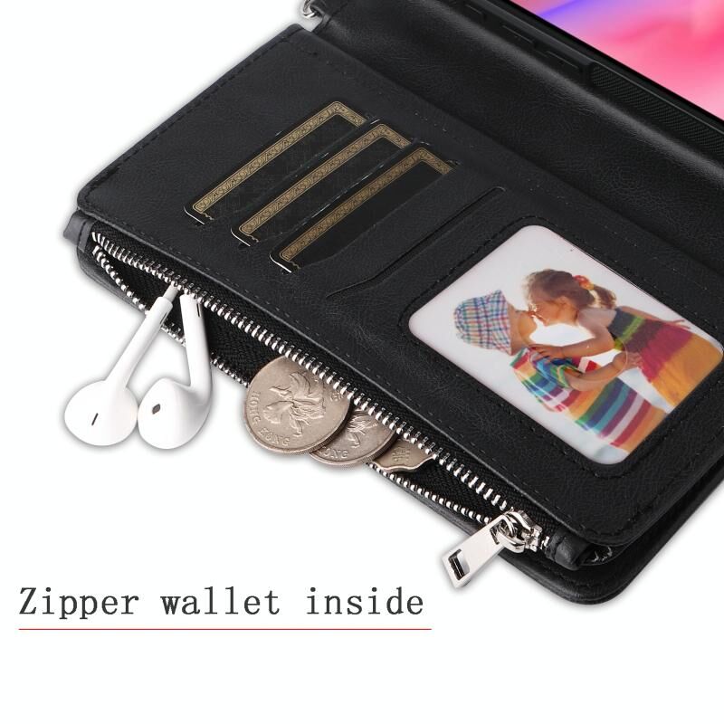 Θήκη κινητού τηλεφώνου 2 σε 1 με φερμουάρ, ανθεκτική στις κρούσεις, για iPhone 16, μονόχρωμη (Μαύρο)