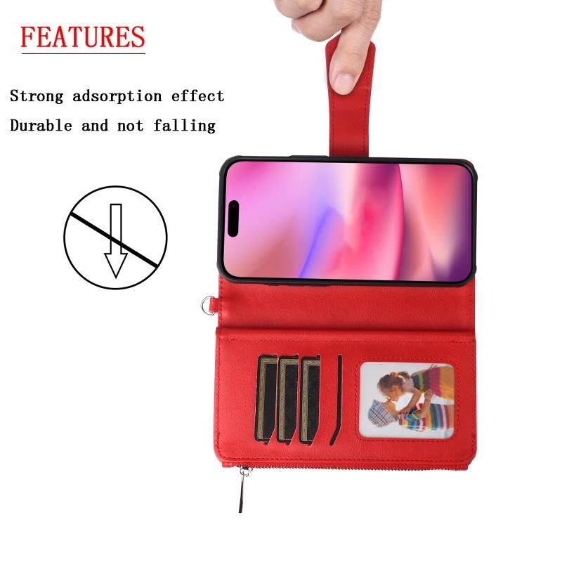 Θήκη κινητού τηλεφώνου 2 σε 1 με φερμουάρ, ανθεκτική στις κρούσεις, για iPhone 16, μονόχρωμη (Μπλε)