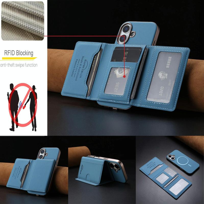 2. Magnetic Tri-Fold Wallet Design: Features a horizontal fold with a strong magnetic closure for easy access and secure storage.