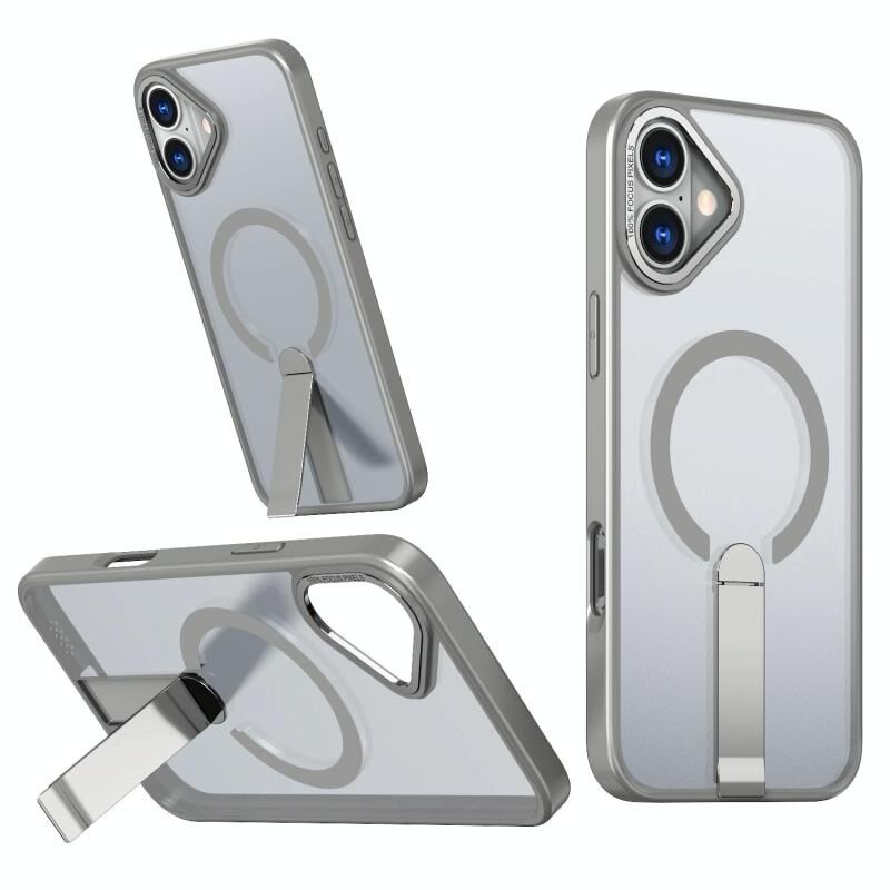For iPhone 16 Star Shine Series TPU + PC MagSafe Phone Case with Fold Holder(Grey)