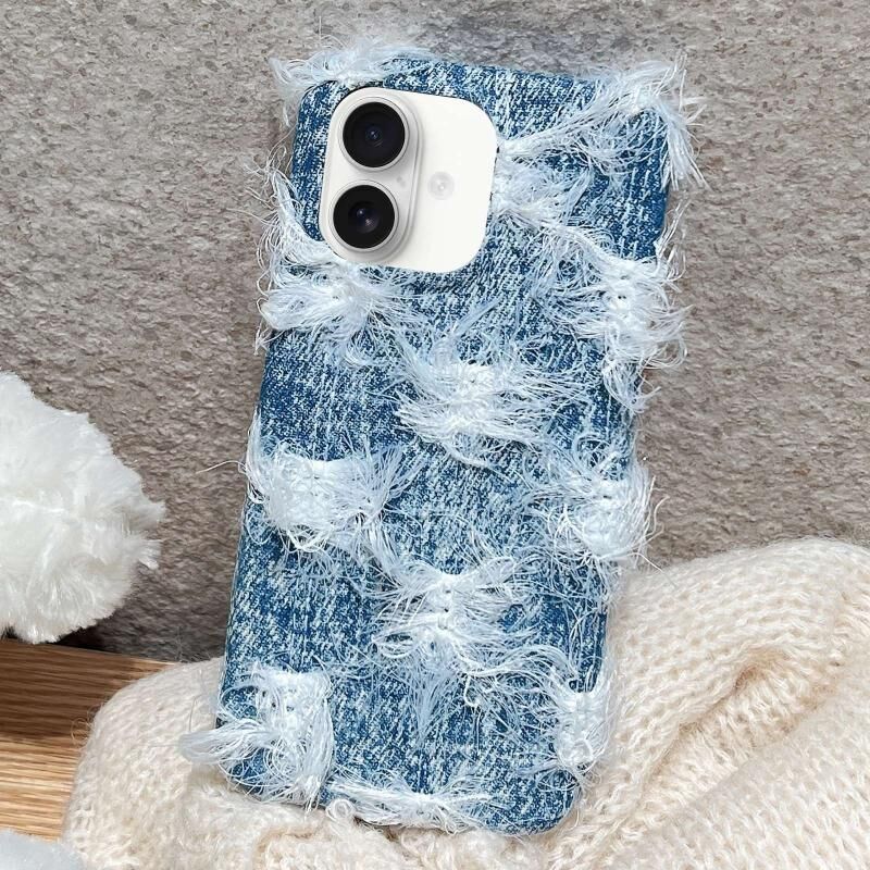 For iPhone 16 Striped Fabric Plush TPU Phone Case(Blue)