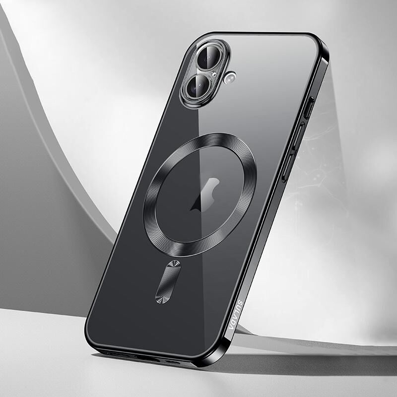 For iPhone 16 SULADA MagSafe Plating TPU Shockproof Phone Soft Case(Black) (SULADA)