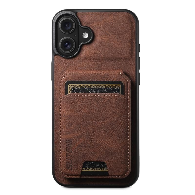For iPhone 16 Suteni H02 Litchi Leather Card Wallet Stand Back Phone Case(Brown) (Suteni)