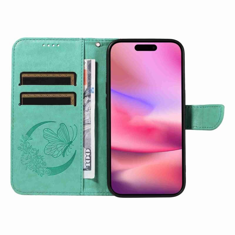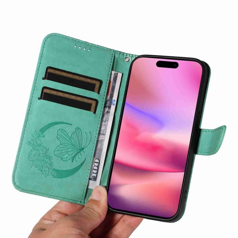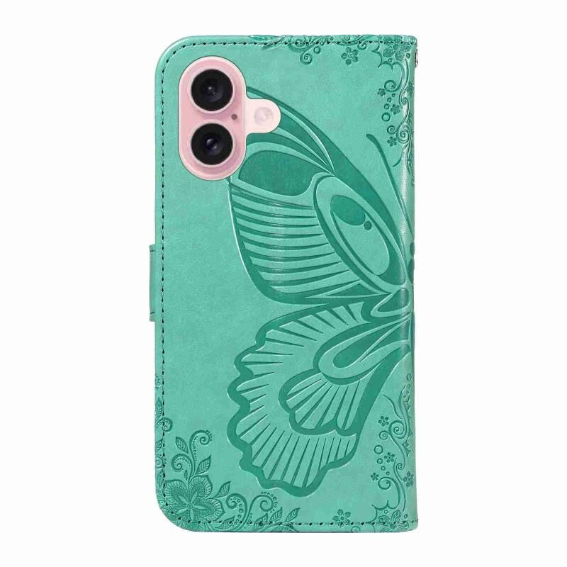 Θήκη τηλεφώνου από δέρμα με ανάγλυφο σχέδιο πεταλούδας Swallowtail για iPhone 16 (Μπλε)