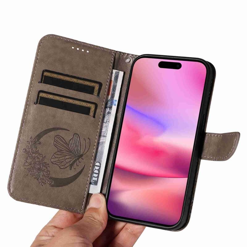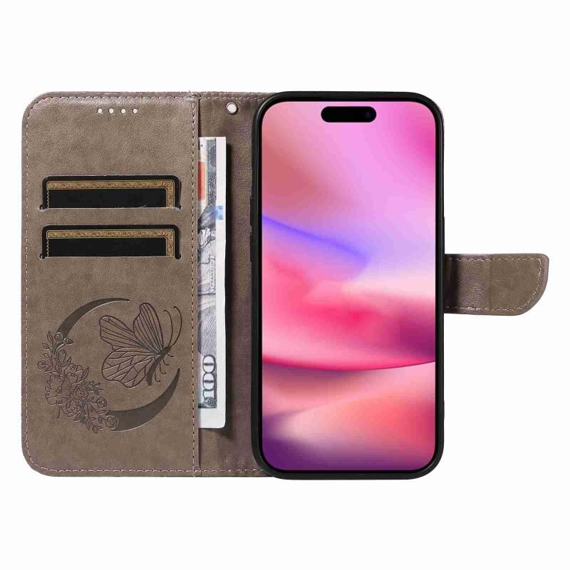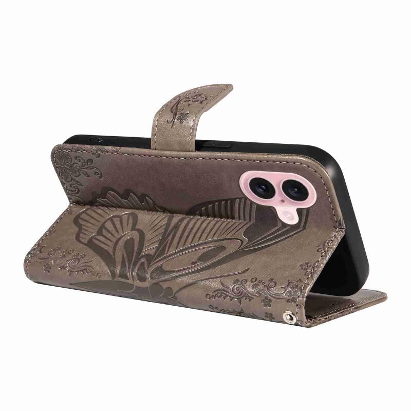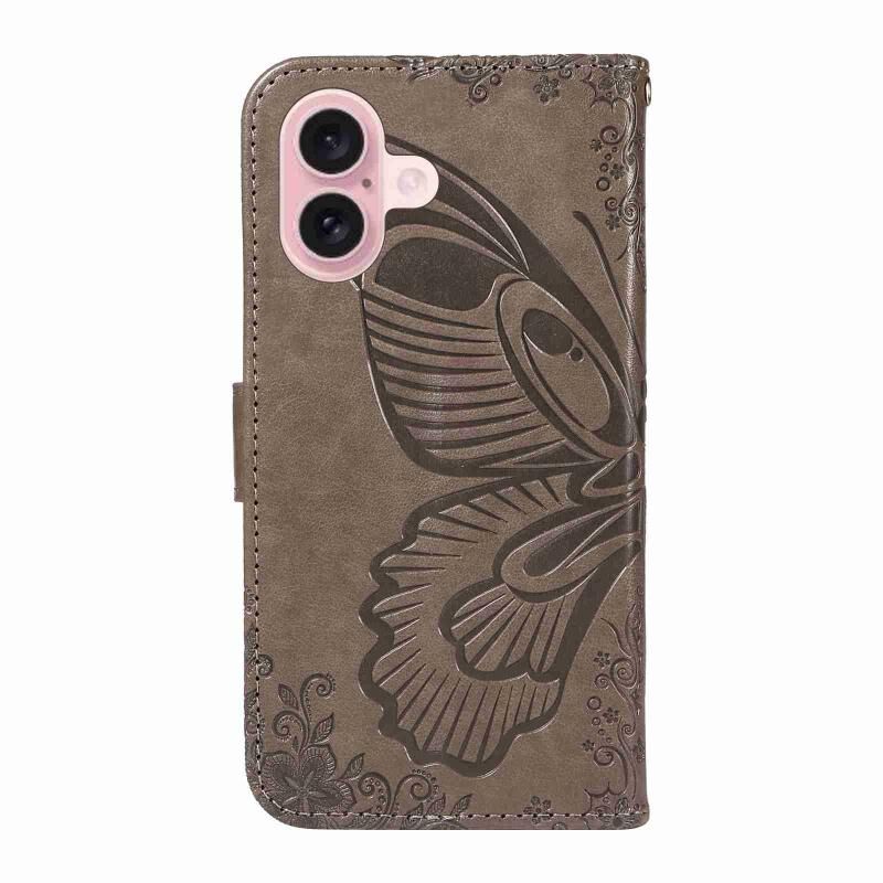 Θήκη τηλεφώνου από δέρμα με ανάγλυφο σχέδιο πεταλούδας Swallowtail για iPhone 16 (Μπλε)