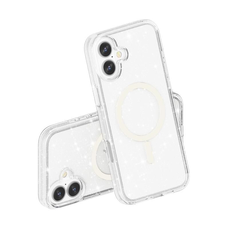 For iPhone 16 Terminator Style Glitter Powder MagSafe Magnetic Phone Case(White)