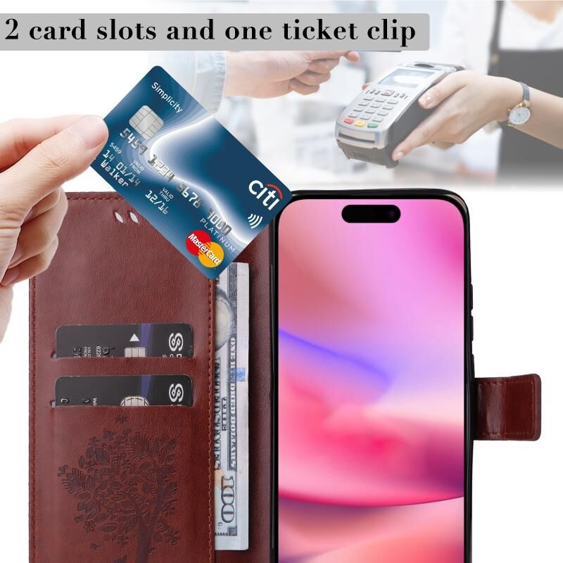 4. Λειτουργία Πορτοφολιού: Η δερμάτινη θήκη είναι εξοπλισμένη με υποδοχές καρτών για την τοποθέτηση καρτών και ενός μικρού ποσού μετρητών.