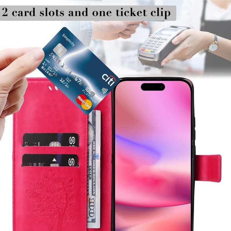 Θήκη τηλεφώνου από δέρμα με σχέδιο ανάγλυφου δέντρου & γάτας για iPhone 16 (Ροζ)