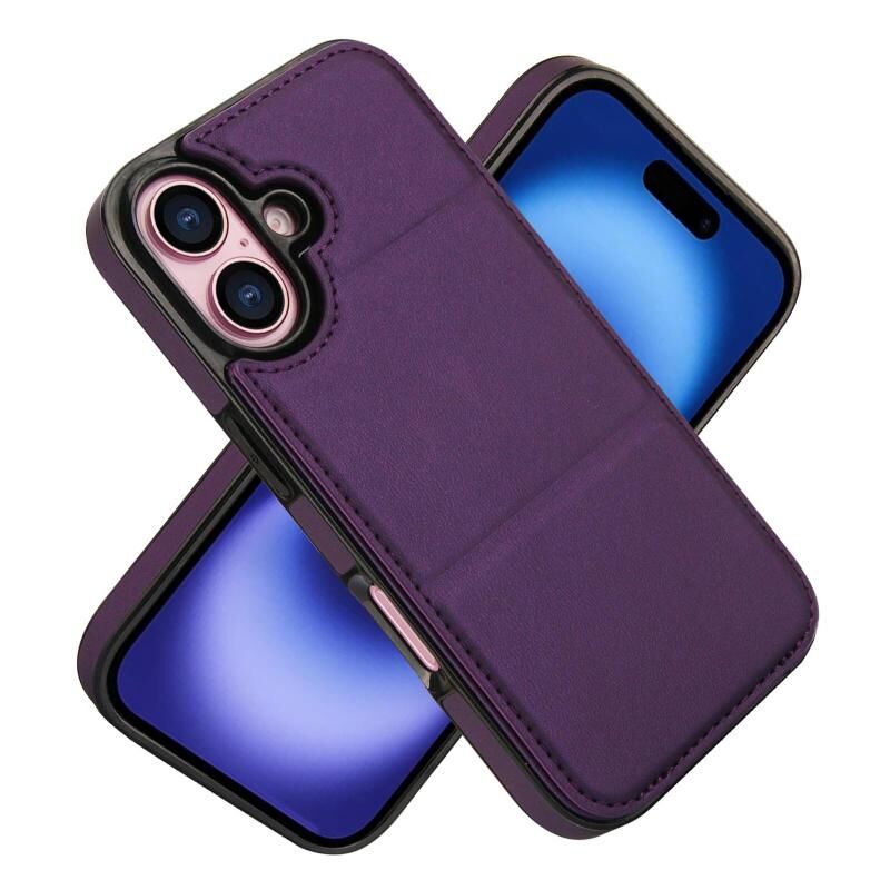 For iPhone 16 Tri-fold Holder Leather Phone Case with Card Slot(Dark Purple)