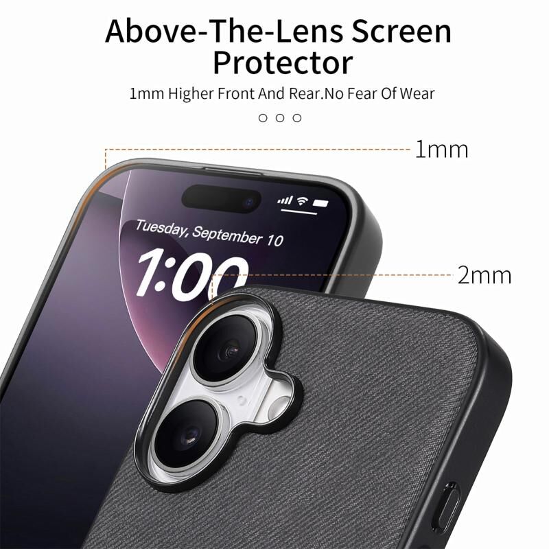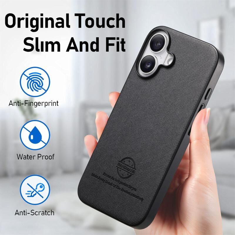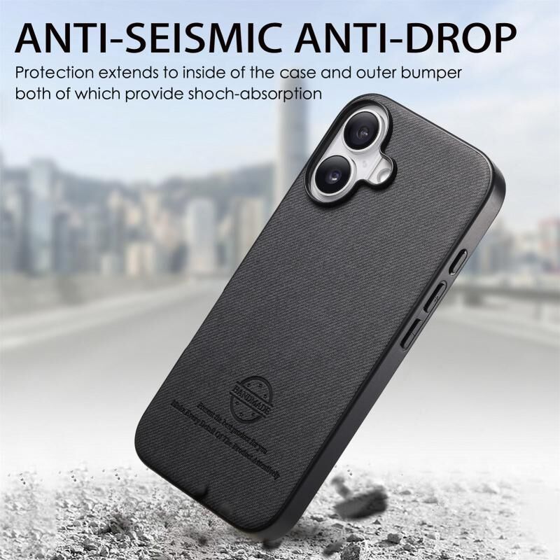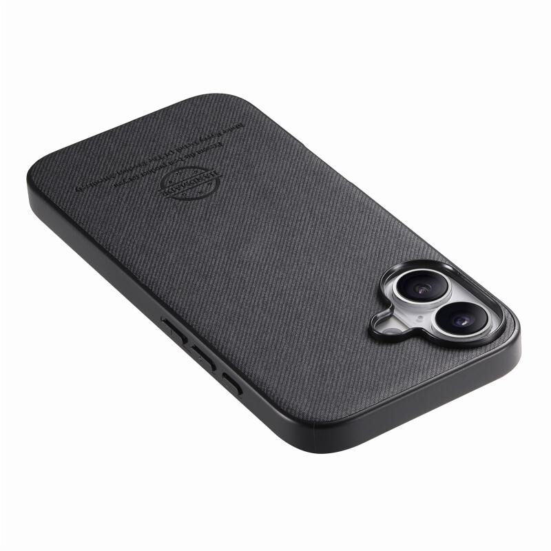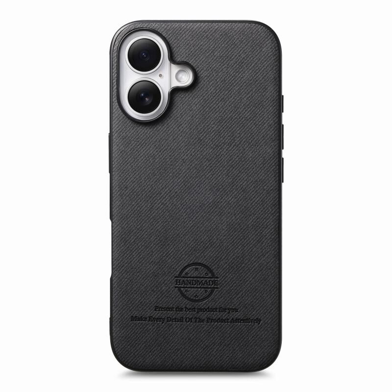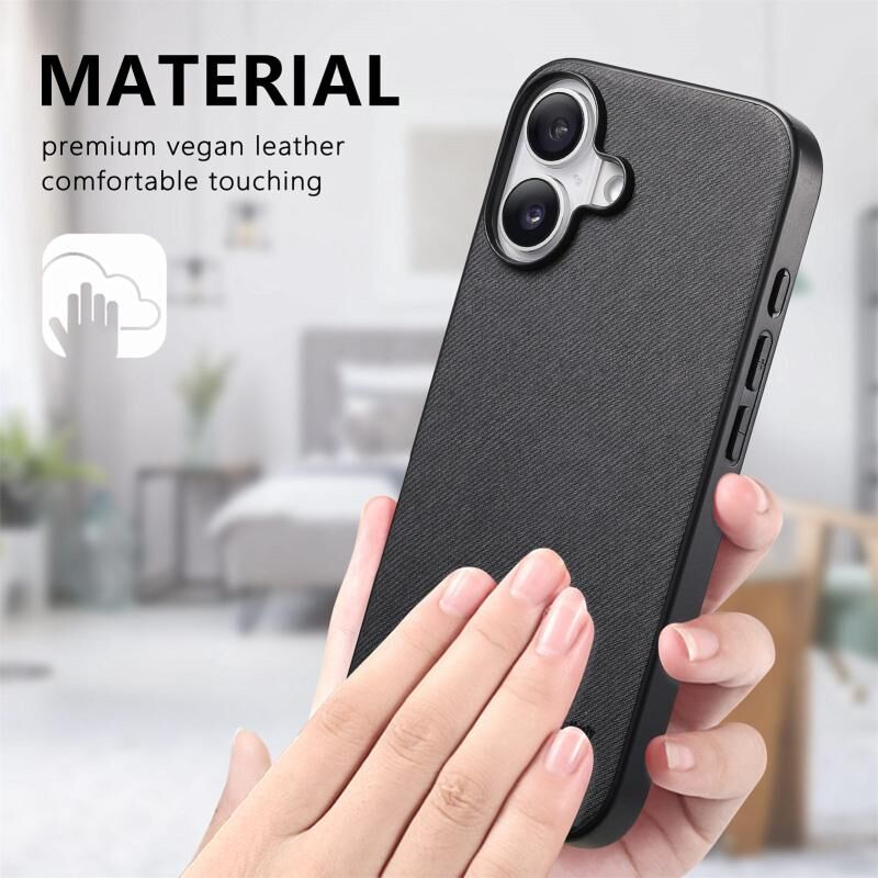 For iPhone 16 Twill Fabric Leather Skin Back Phone Case(Black)