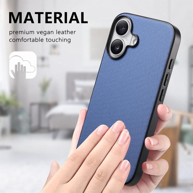 For iPhone 16 Twill Fabric Leather Skin Back Phone Case(Blue)