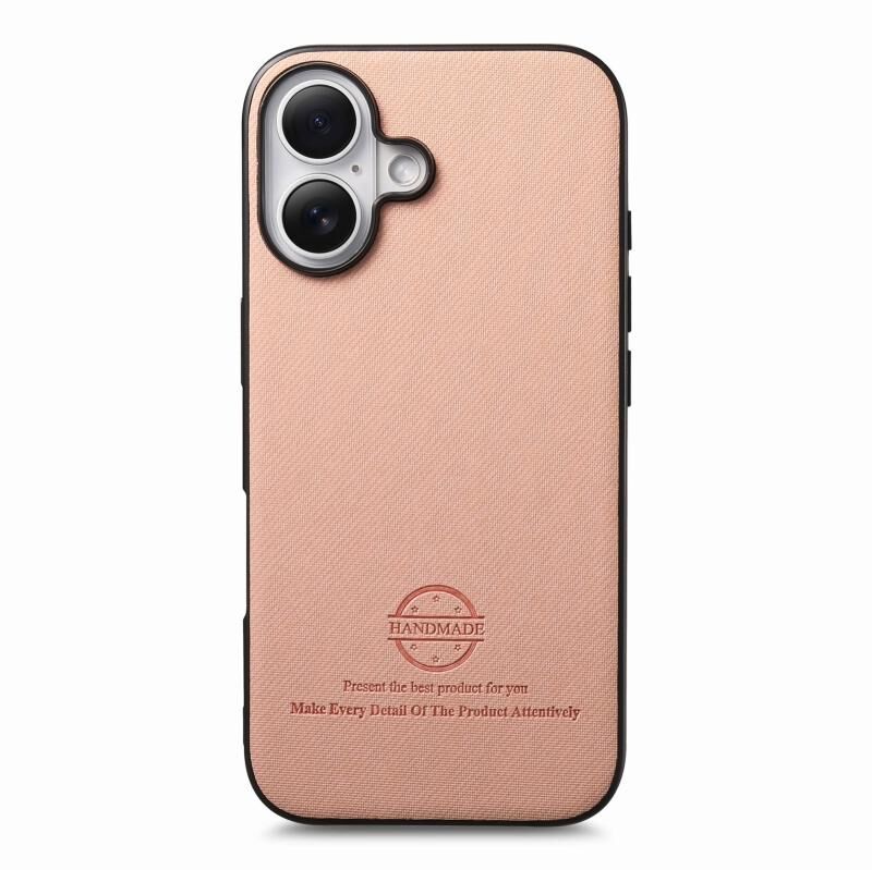 For iPhone 16 Twill Fabric Leather Skin Back Phone Case(Pink)