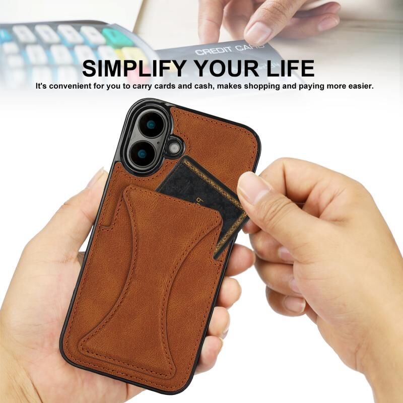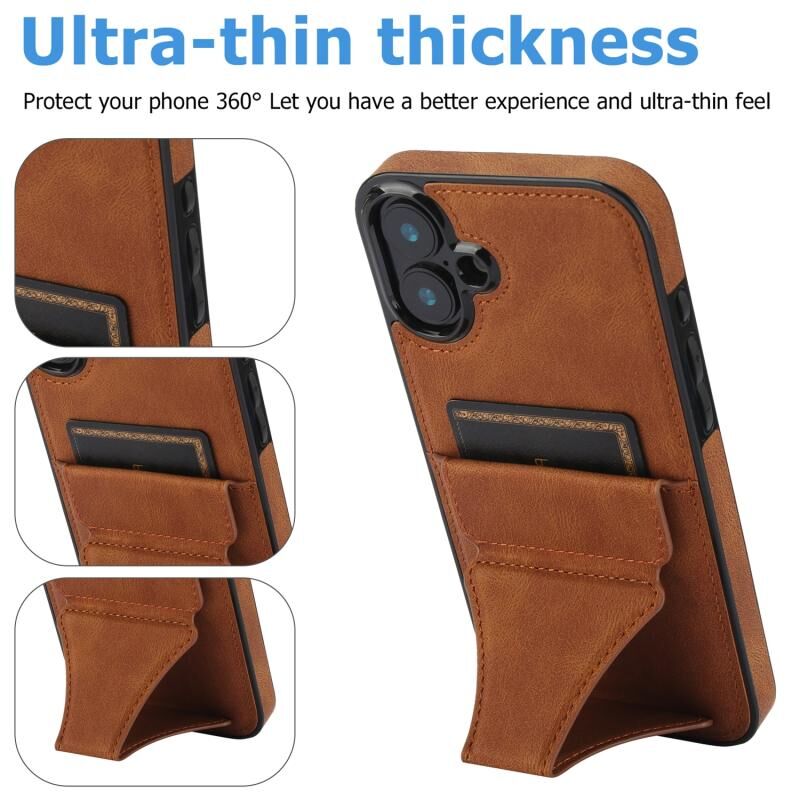 For iPhone 16 Ultra-thin Shockproof Phone Protective Case with Holder(Brown)