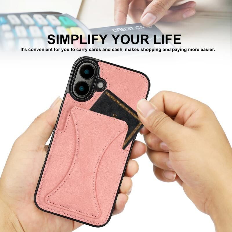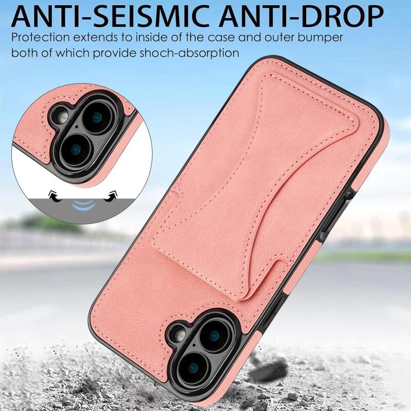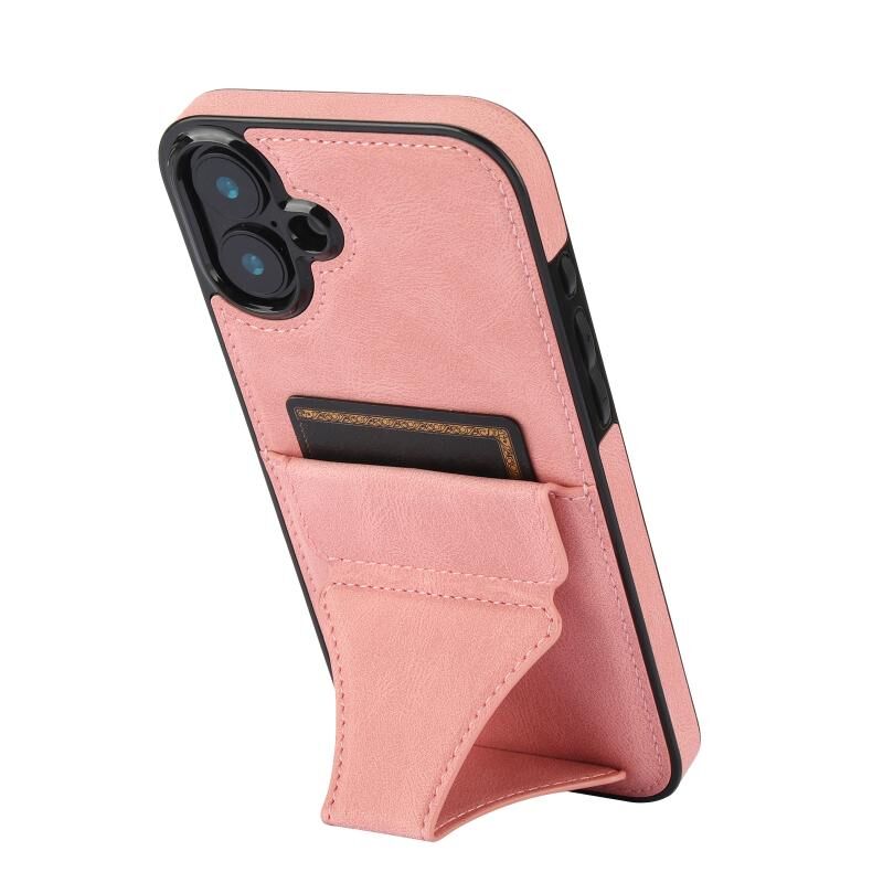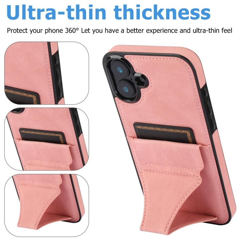 For iPhone 16 Ultra-thin Shockproof Phone Protective Case with Holder(Rose Gold)