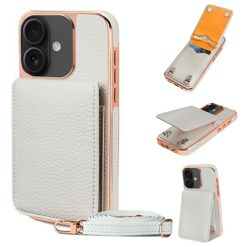 Θήκη τηλεφώνου VIETAO για iPhone 16 με υφή δέρματος λύτσι, από PU με κορδόνι (Λευκό) (VIETAO)